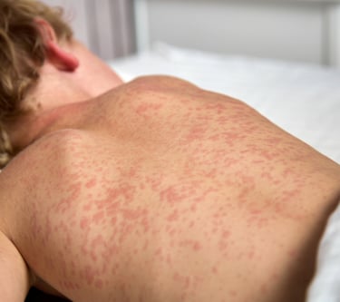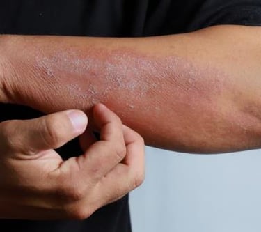 Dermatitis atópica, Urticaria y Eczema. A menudo relacionadas con el contacto o alimentos.